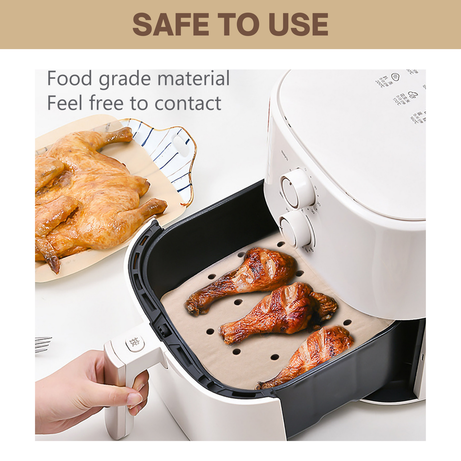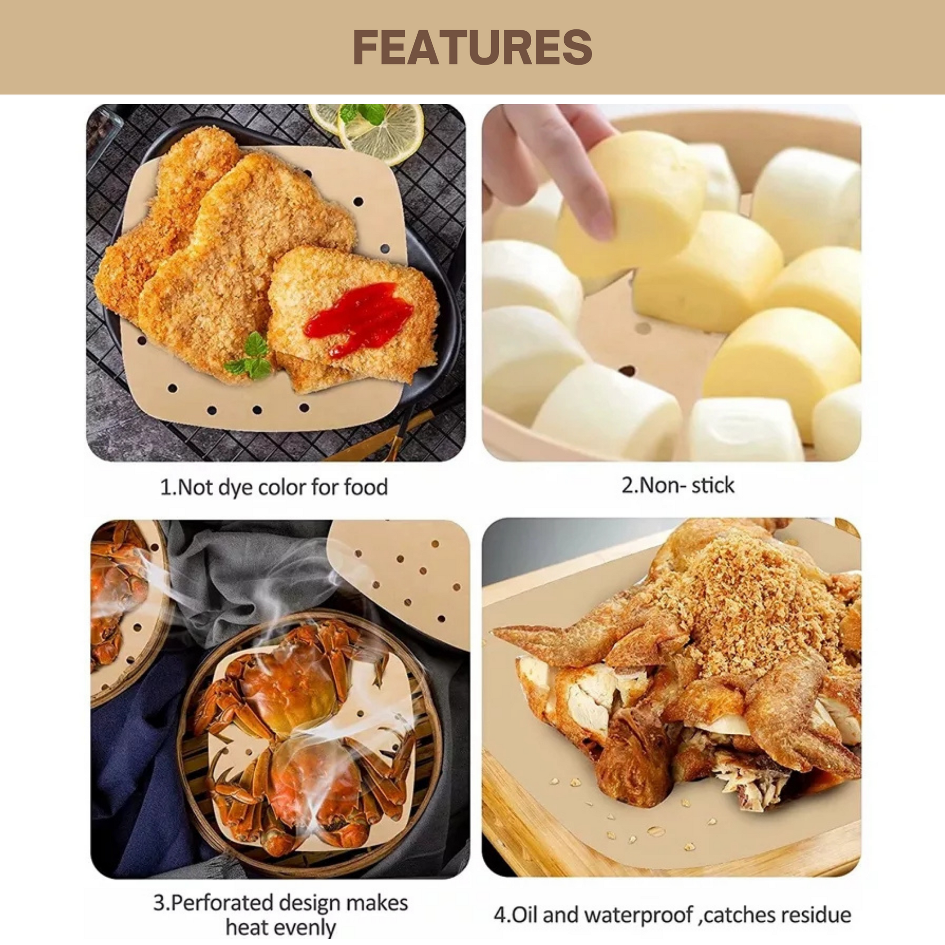 - UNMATCHED QUALITY: Our frying liners are crafted of premium food-grade pulp paper, they're non-stick, oil-proof, and waterproof. Thanks to their high heat resistant capacity, they can withstand temperatures up to 428 degrees, and will not leach harmful chemicals into your food while cooking, so you can safely air fry a delicious meal for the whole family.