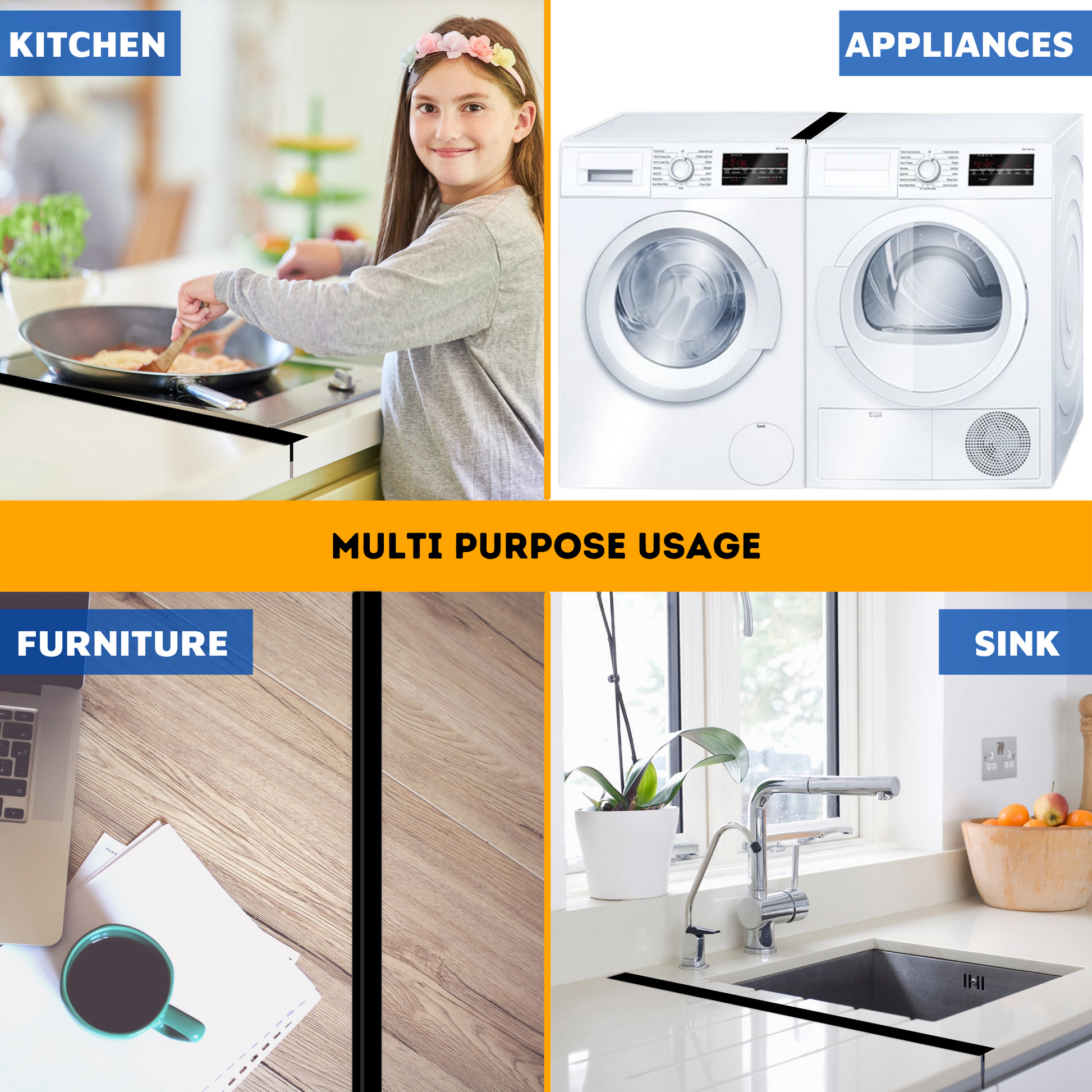 It can be used anywhere, as space between dishwasher, between two tables, or as space between washing machine and dryer. A must-have in any modern kitchen, the gap filler is easy to maintain and dishwasher safe, saving you time and energy.